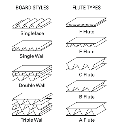 Kertas kardus yang memiliki bagian bergelombang pada sisi atasnya. Bagian gelombang ini mampu menahan barang yang ada di dalamnya dan menahan dari getaran yang dapat merusak barang.